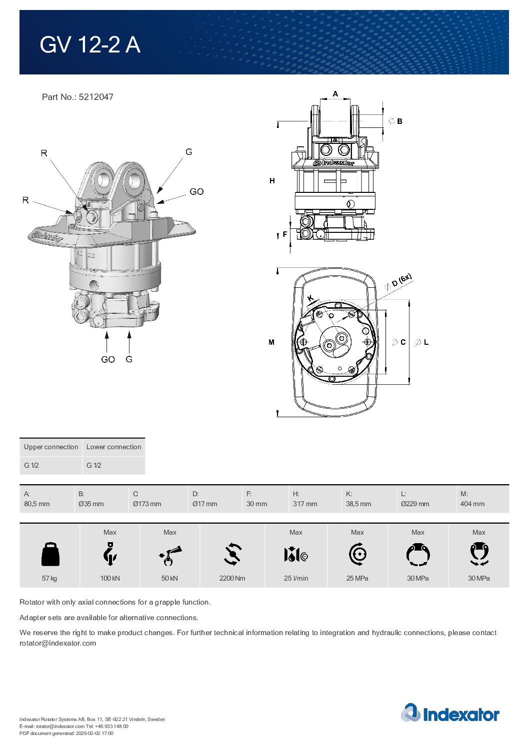 Rotator GV12-2A – Ø173 | Moteur hydraulique de rotation