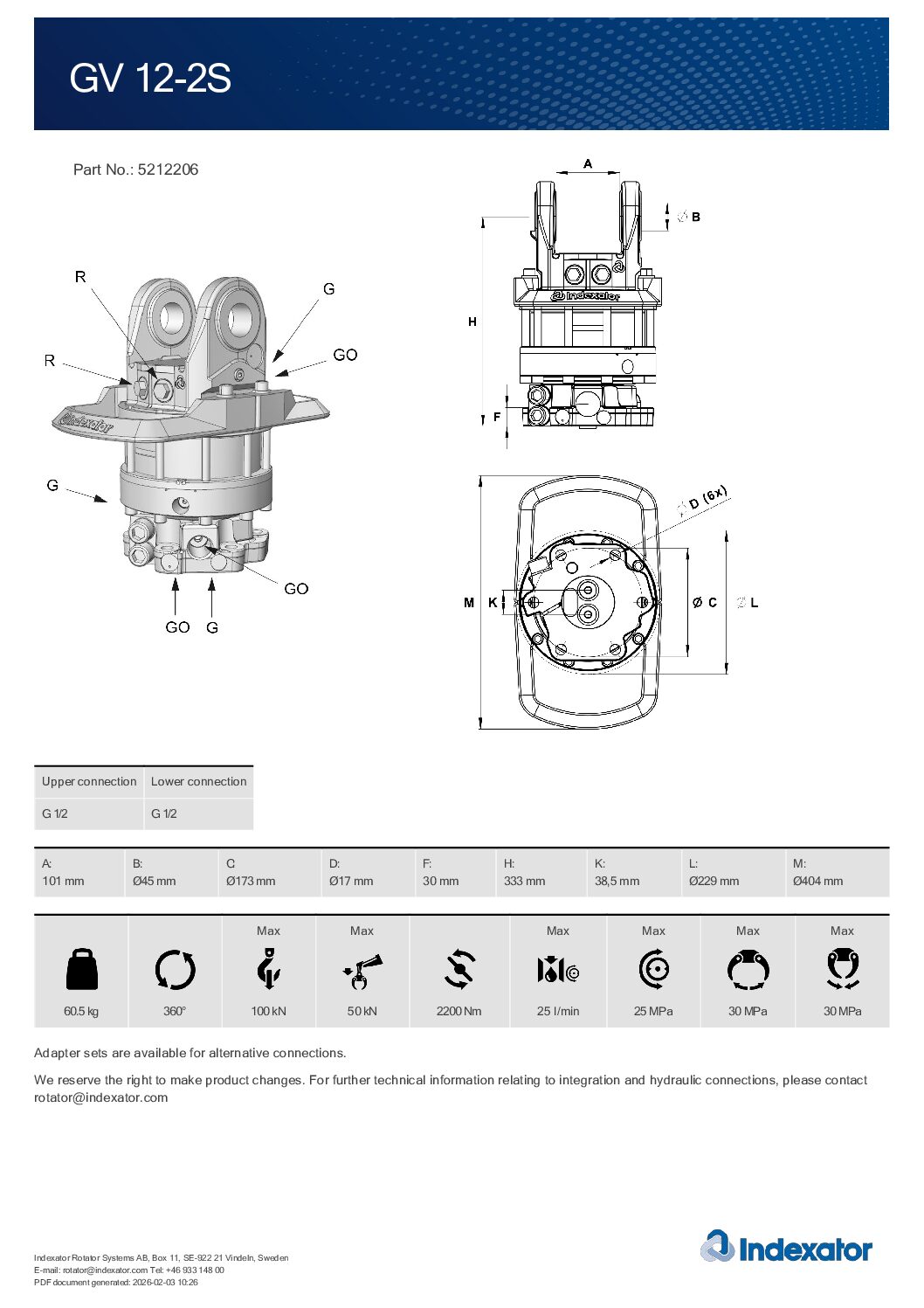 | Charge axiale statique maxi | 100 kN |