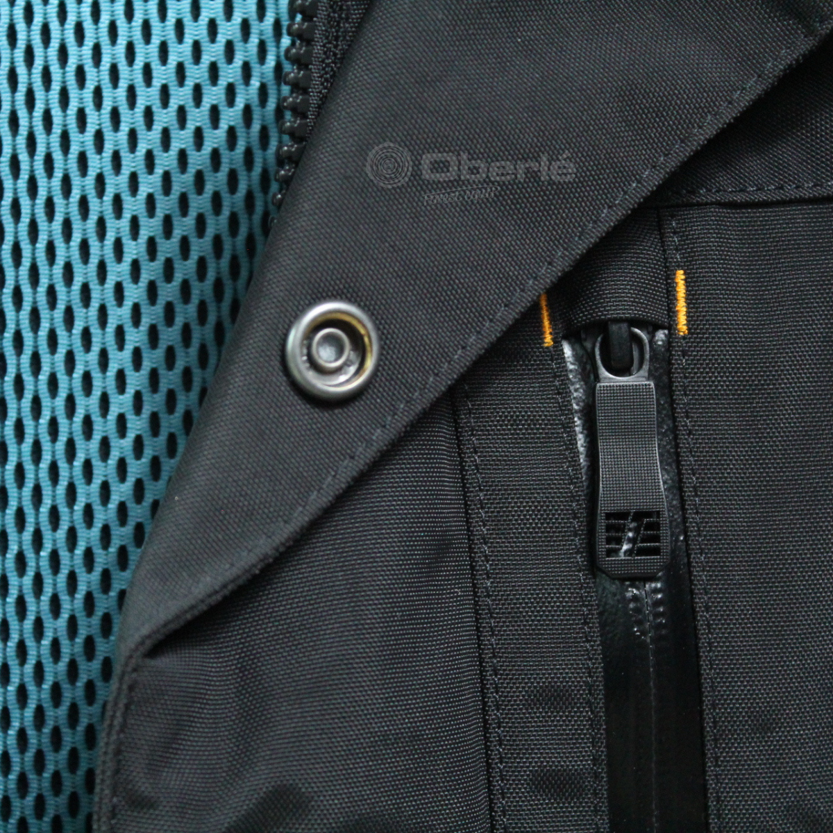 - Poche de poitrine zippée, avec fixation pour badge d’identification